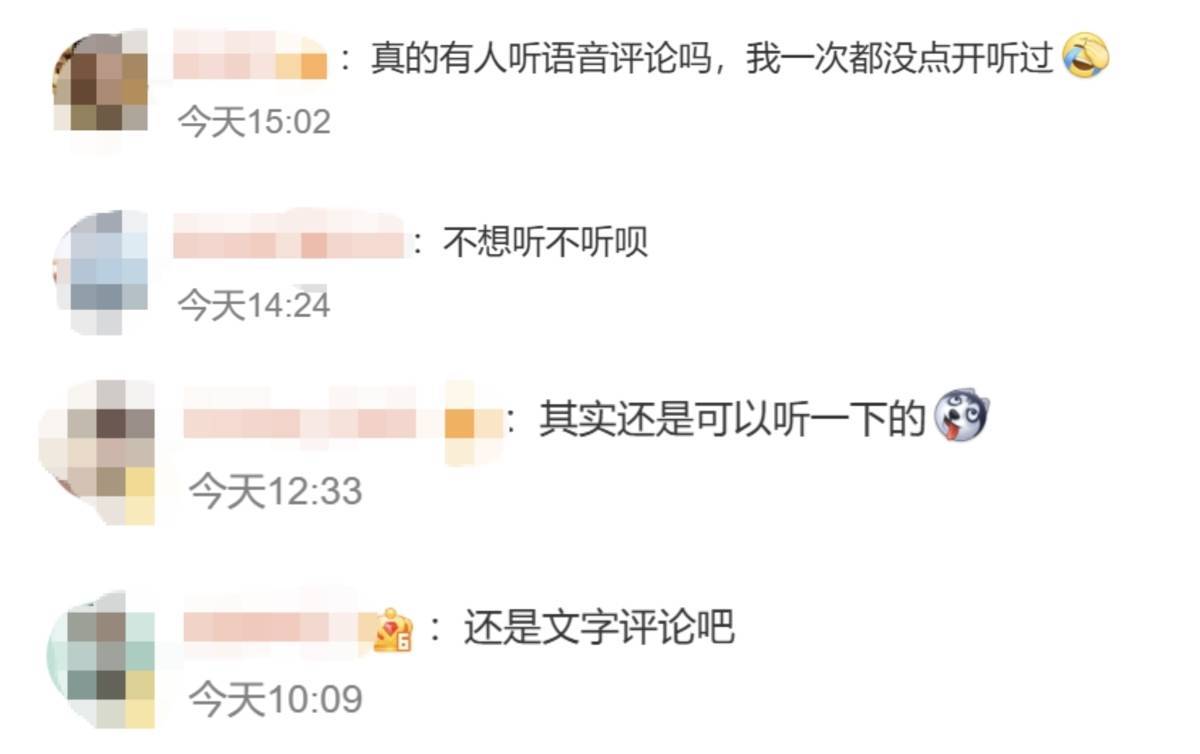 如今重新上线该功能,再次引发许多网友吐槽。有网友表示,该功能没用而且很烦,一看到长语音就没兴趣打开,还浪费时间,不如文字直观清晰。但也有网友表示,语音评论很新奇,有些文字不能表达的意思,通过语音反而有更好的效果。