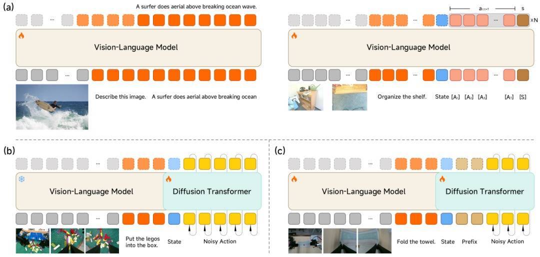 视觉语言大脑(VLM): 团队采用了多模态 VLM 大模型作为底座。它负责理解人类的模糊指令(如“请把毛巾叠好”),并从高清视觉输入中捕捉空间关系。