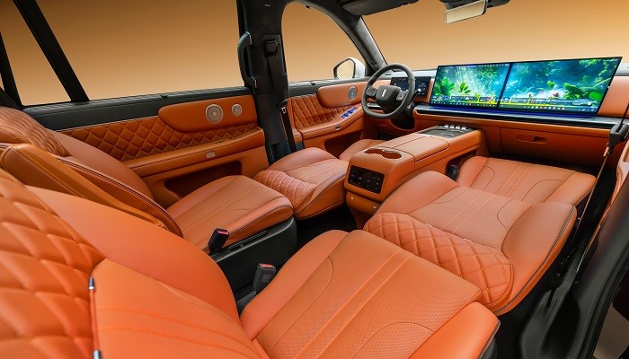 内饰是此次信息更新的重点。凯威德采用双辐式方向盘和怀挡机构,中控区域配备33英寸9K屏幕,并加入8英寸前后排控制屏和12.9英寸后排双娱乐屏,延续了美系豪华纯电车型强调座舱观感和后排体验的思路。车内还提供23扬声器AKG音响,采用6座布局,整体风格在同级中有较高辨识度。