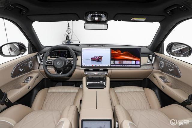 外观方面,新车采用了一体式的直瀑式格栅设计,灵感来源于宫殿台基,彰显出磅礴气势。同时,一体式驭风前机盖,通过两侧导流槽设计不仅能降低风阻,还将视觉重心下移,轮廓更紧致。此外,新车还配备了10平方毫米的智能呼吸格栅。